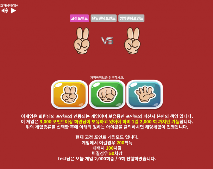 가위바위보 게임 페이지 정보 목록 답변 본문 회원, 회원포인트 연동사용 포인트, 게임횟수등 설정기능 이전글달팽이레이싱게임 22.07.18 다음글앱 모바일 매크로 22.07.21 댓글 0 댓글목록 등록된 댓글이 없습니다.